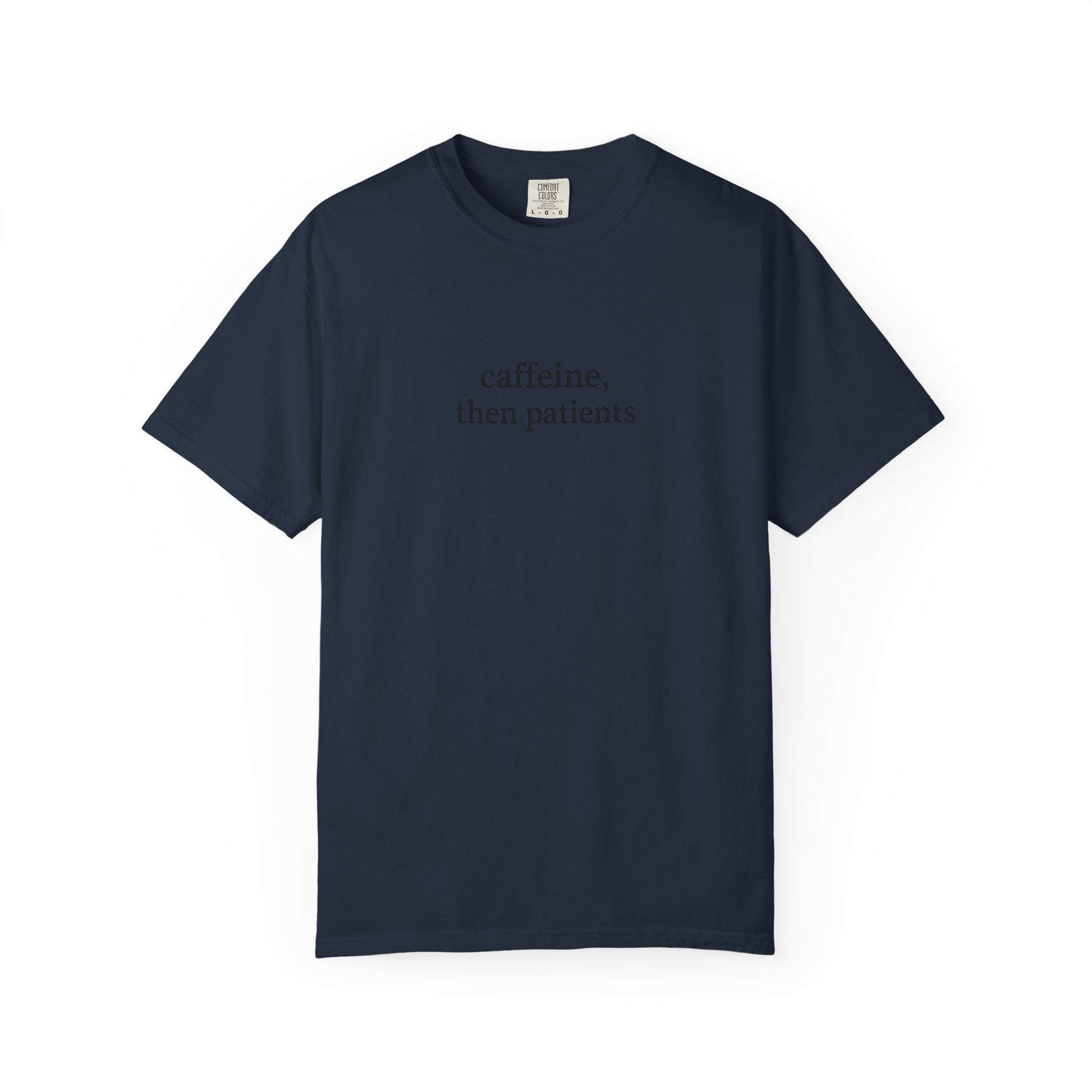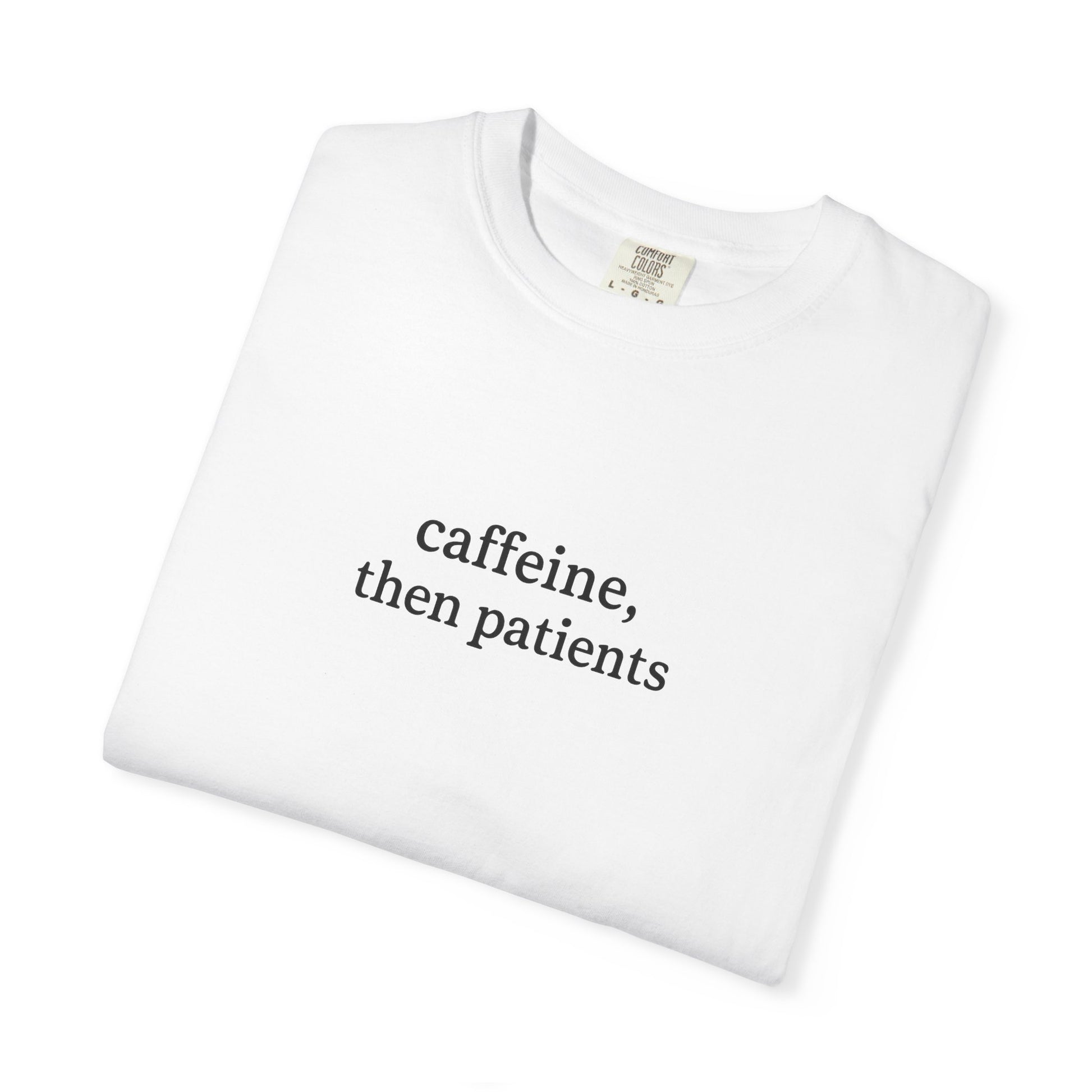 Caffeine Then Patients T-Shirt | Unisex Casual Tee | Gift for Nurses, Med Students, Healthcare Workers, Coffee Lovers, Funny T-Shirt