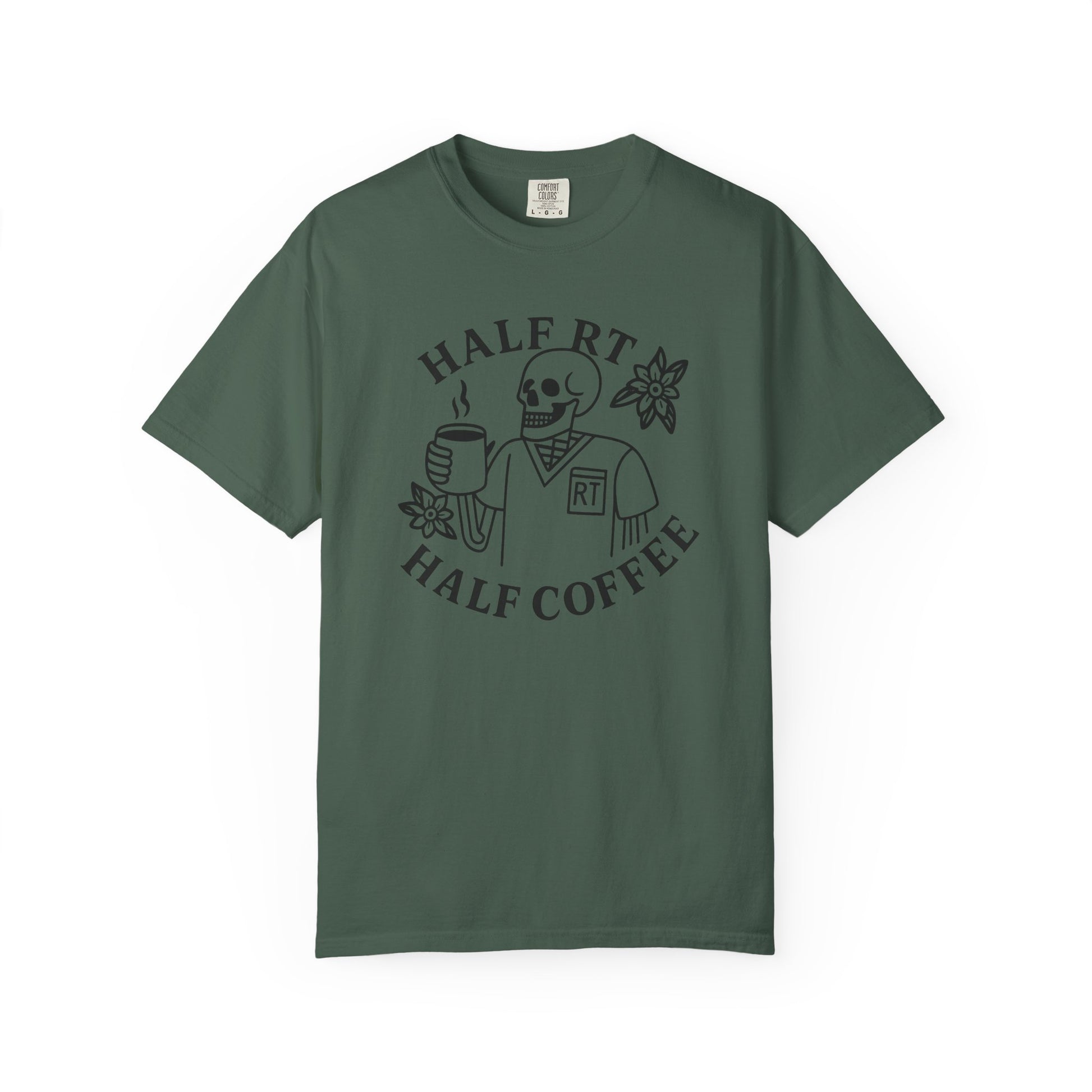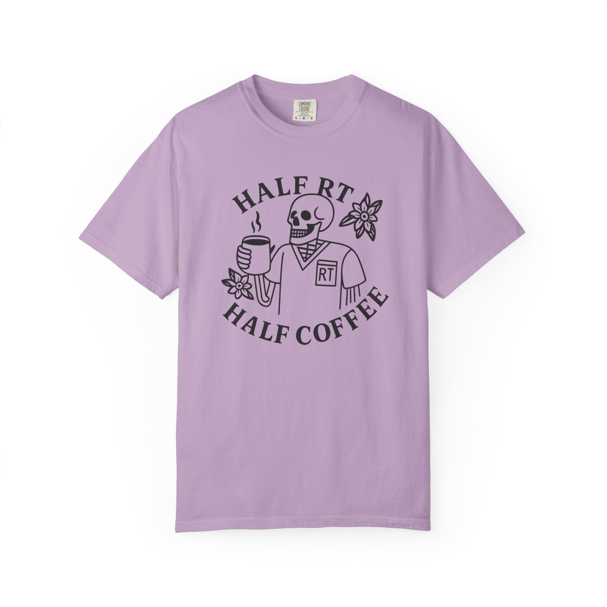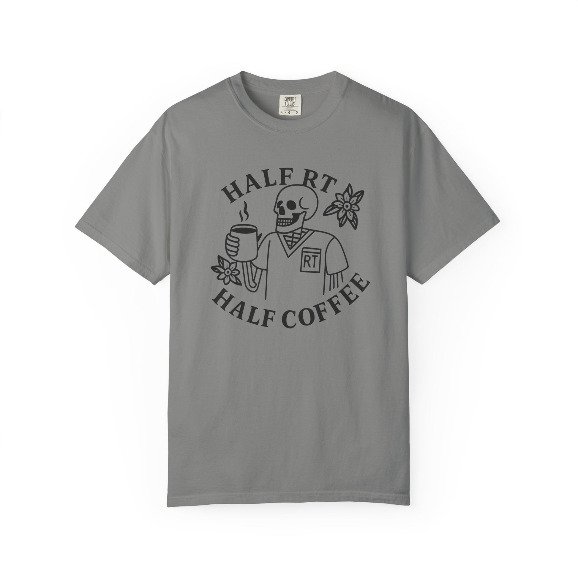Half Coffee Half RT Respiratory Unisex Tee, Fun Coffee Lover Shirt, Casual Everyday Wear, Unique Gift for Friends, Quirky Graphic Tee