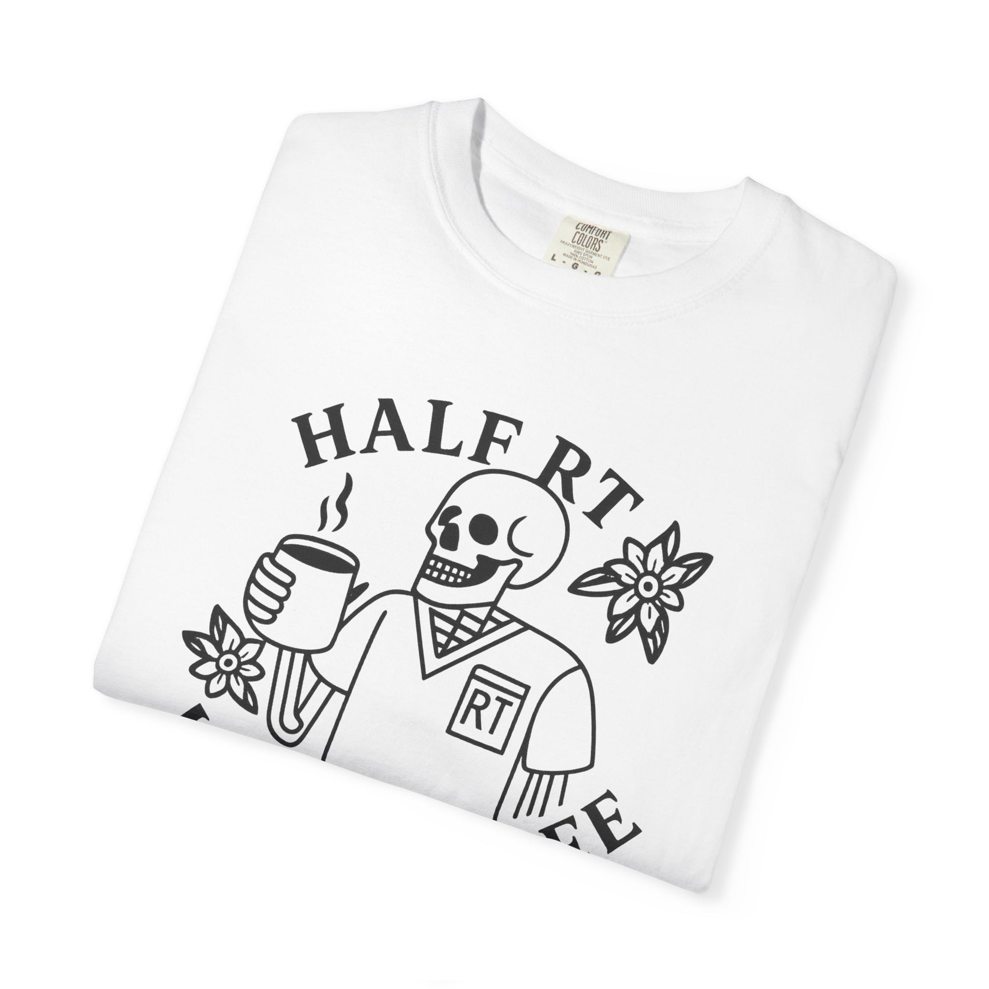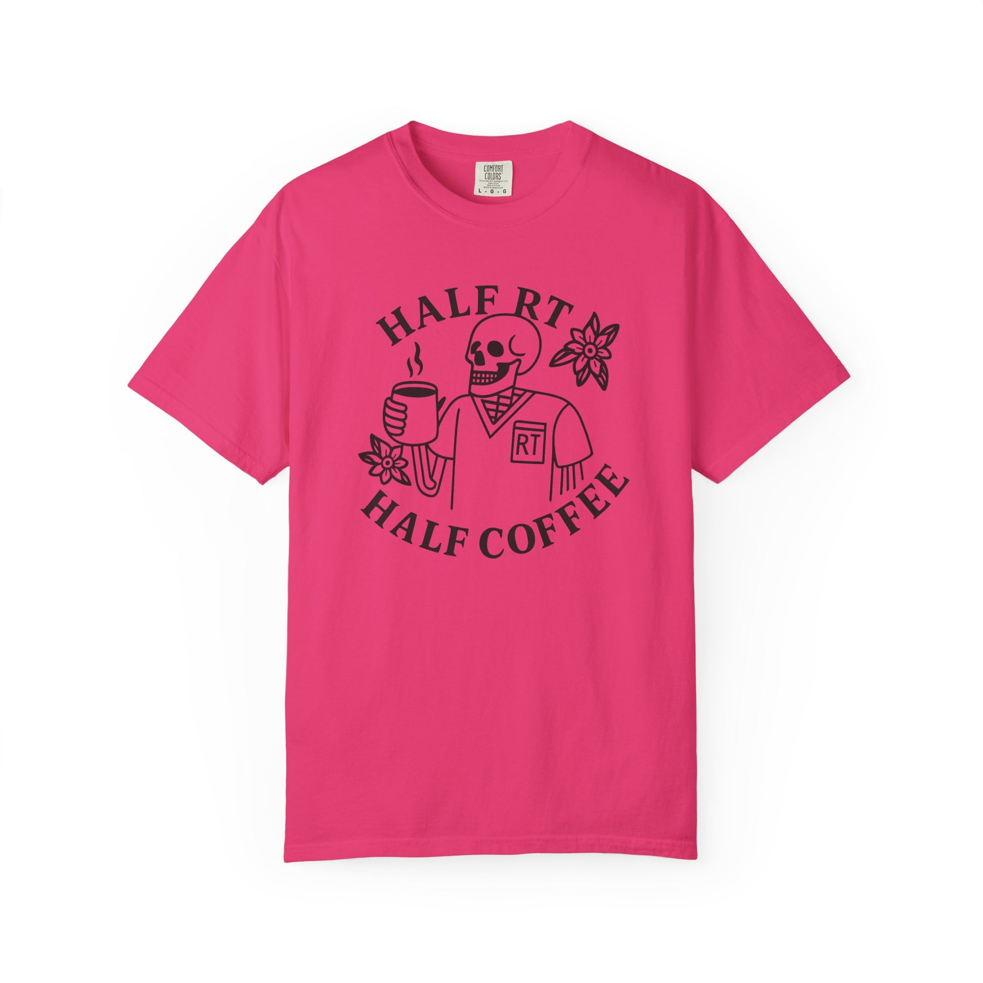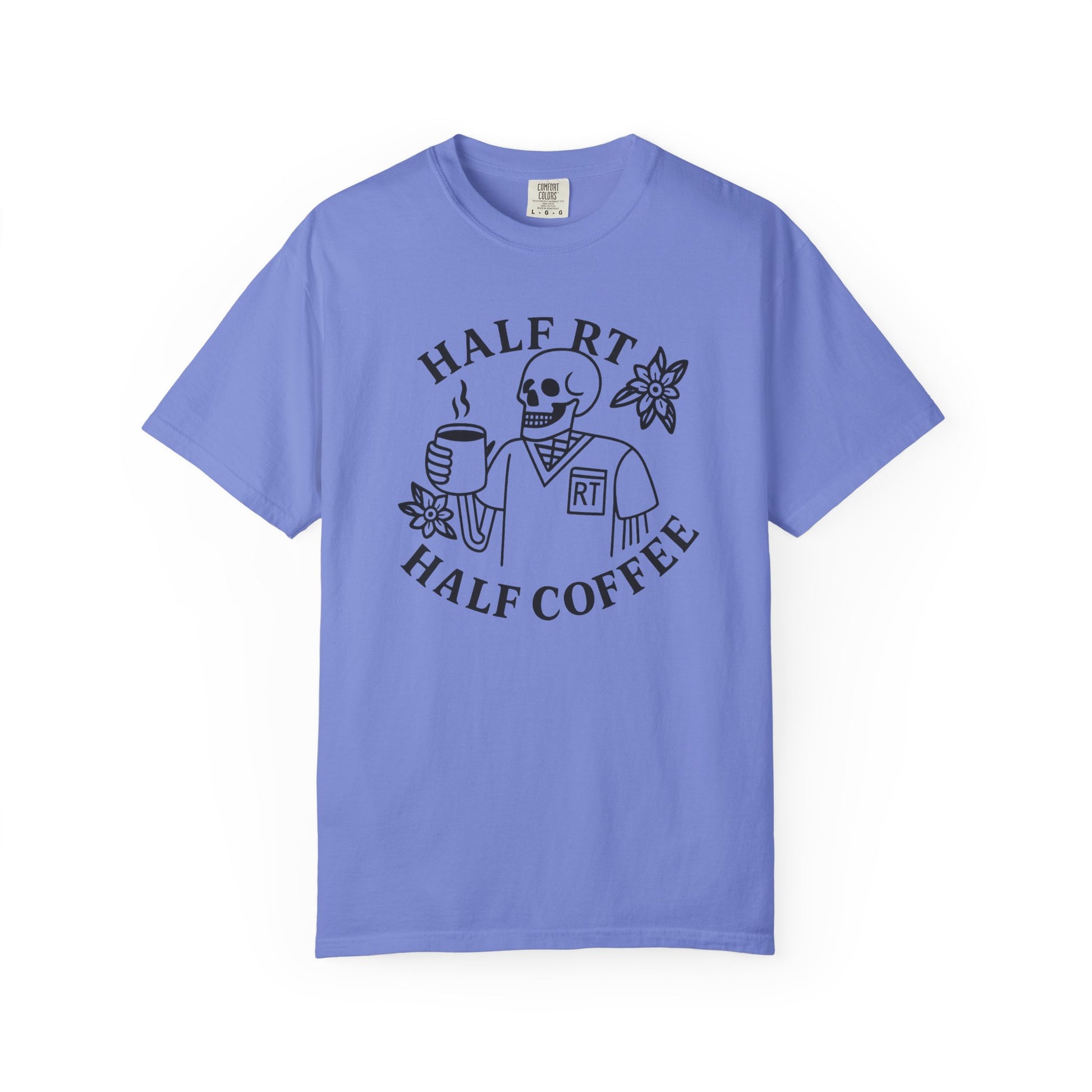 Half Coffee Half RT Respiratory Unisex Tee, Fun Coffee Lover Shirt, Casual Everyday Wear, Unique Gift for Friends, Quirky Graphic Tee